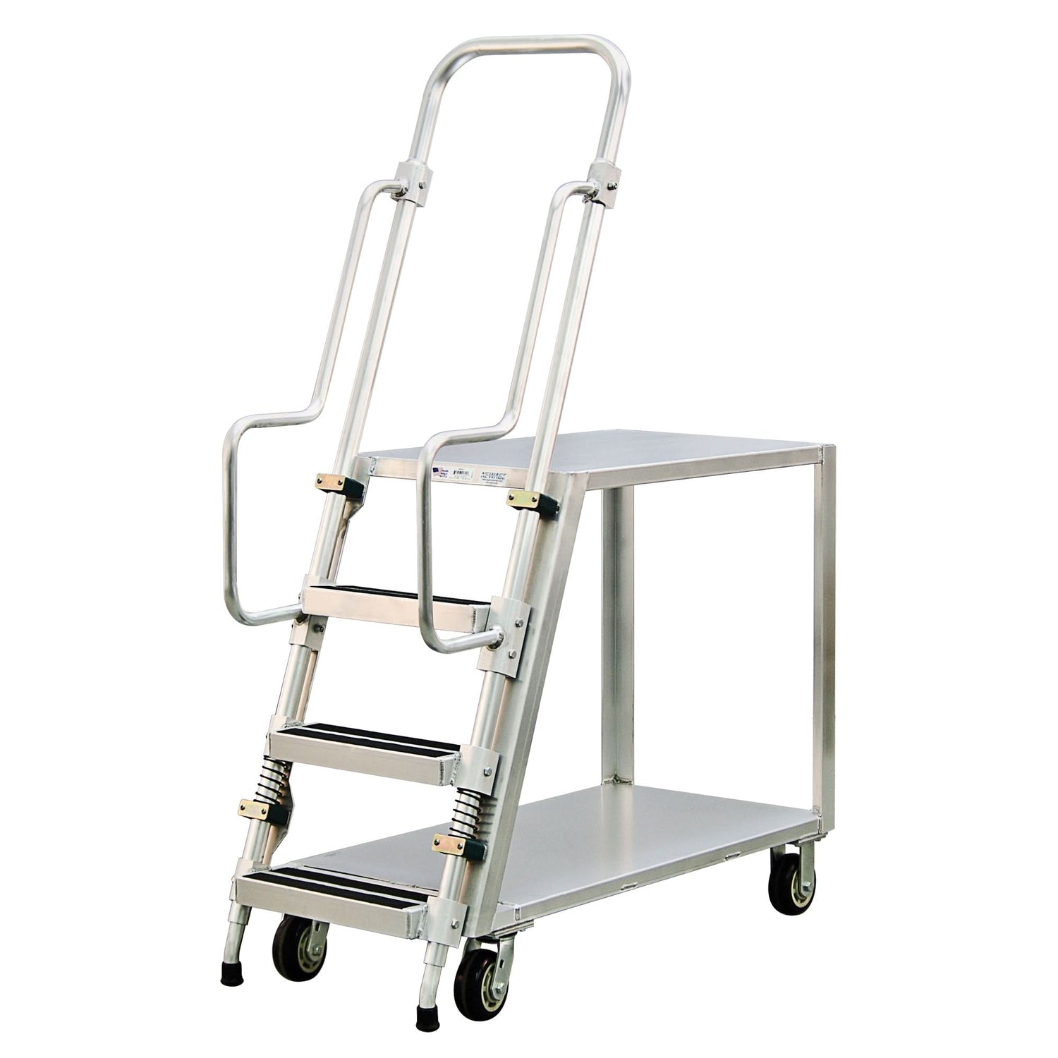 Aluminum Stock Picking Ladder Cart, Aluminum, 22" W x 51-1/2" D, 2 Shelves, 800 lbs. Capacity