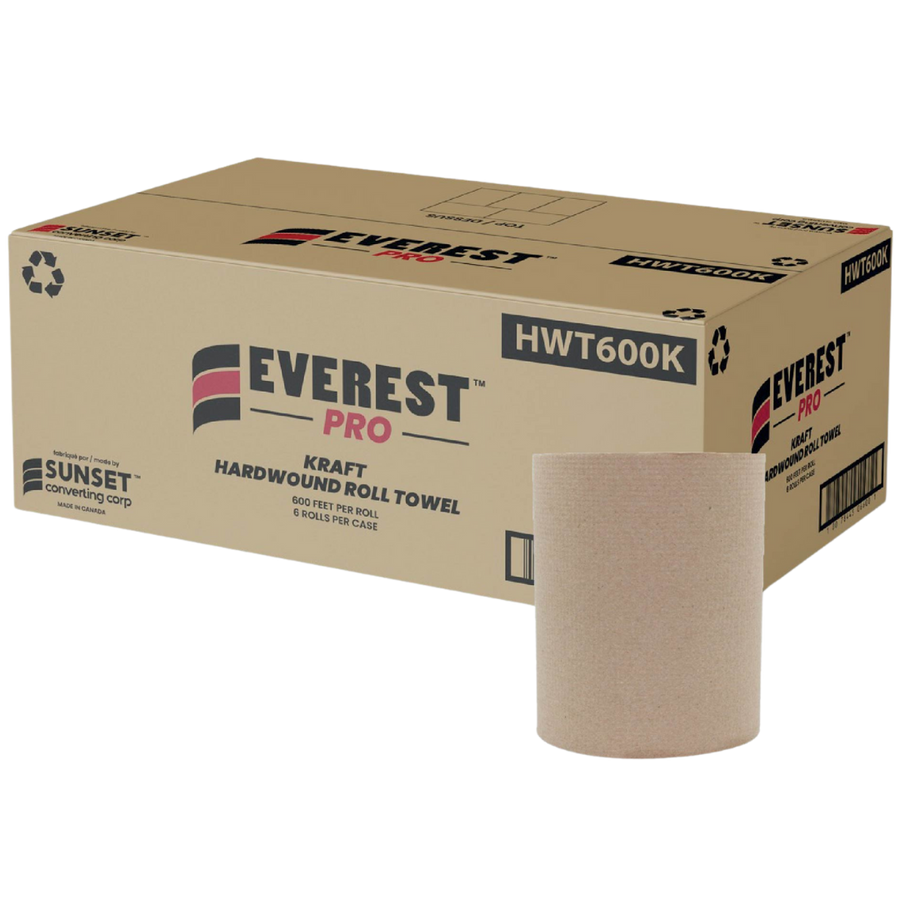 7.85" x 600' Kraft Hand Towel Rolls - 6 Rolls