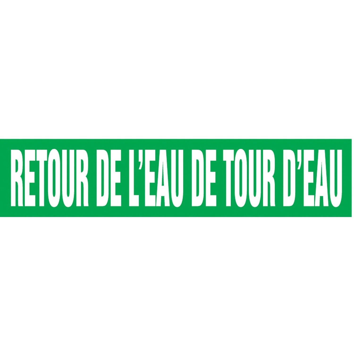 "Retour de l'Eau de Tour d'Eau" Pipe Markers, Self-Adhesive, 2-1/2" H x 12" W, White on Green