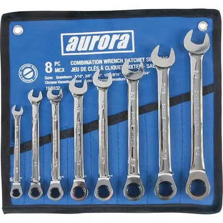 Wrench Set, Ratcheting Box, 8 Pieces, Imperial