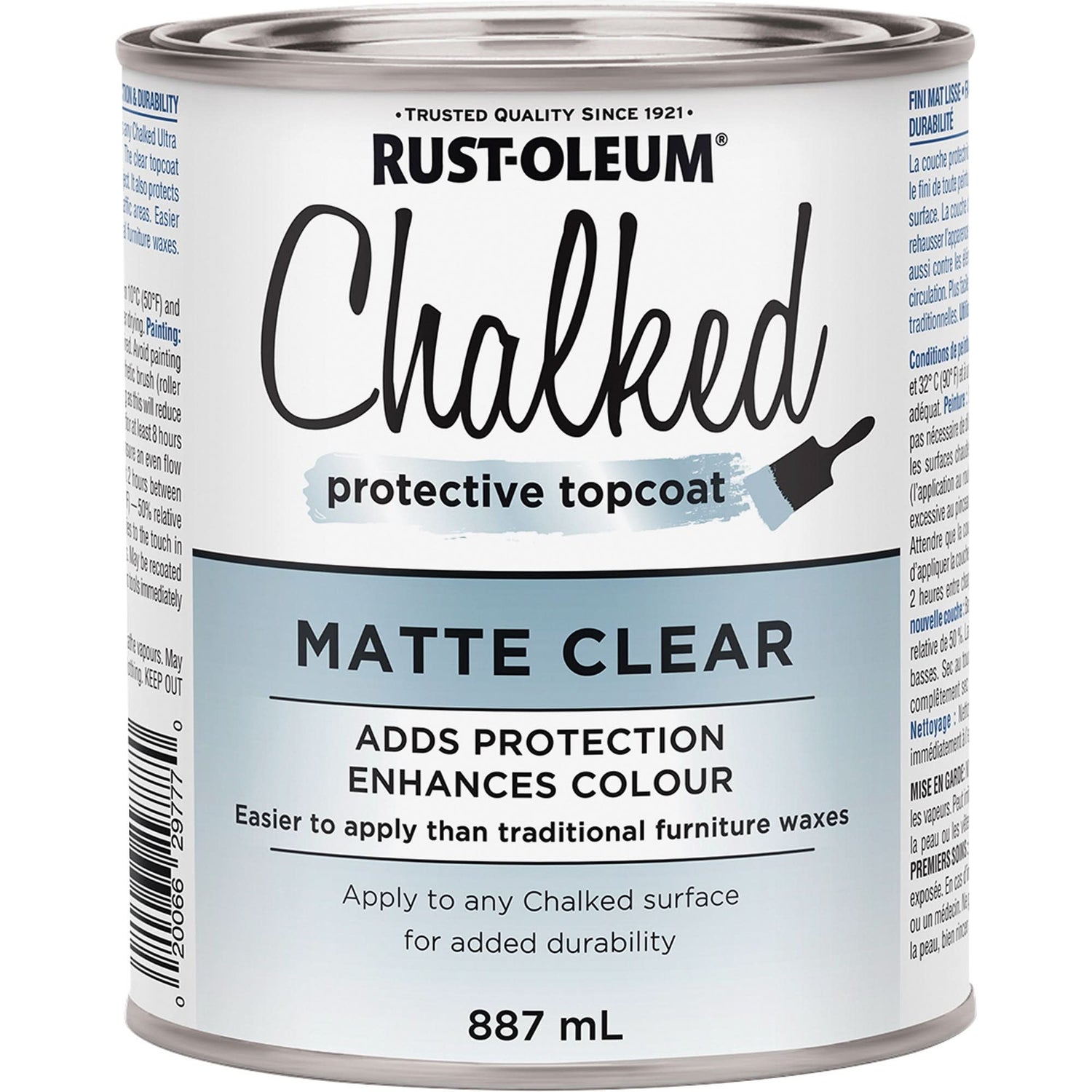 Chalked Protective Topcoat, 887 ml, Can, Clear est en rupture de stock et sera expédié dès qu’il sera de retour en stock.