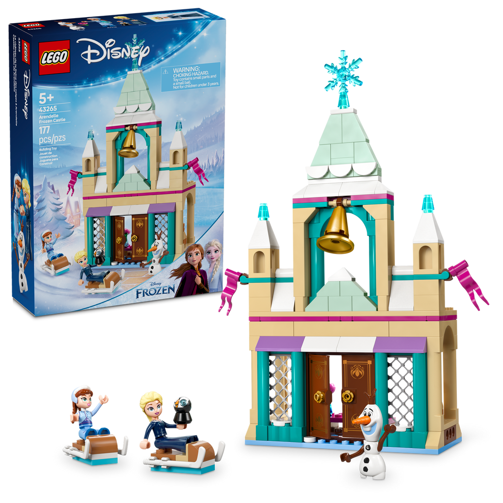 Winter adventures await kids and fans aged 5 and up in this fun LEGO® ǀ Disney Frozen Arendelle Frozen Castle (43265) building fantasy toy, featuring a buildable castle playset with opening doors, a dining room and a bedroom, 2 buildable sleds that kids can race and more fun storytelling elements. Plus, the buildable model kit includes Elsa and Anna LEGO ǀ Disney mini-doll figures and an Olaf LEGO ǀ Disney snowman figure.