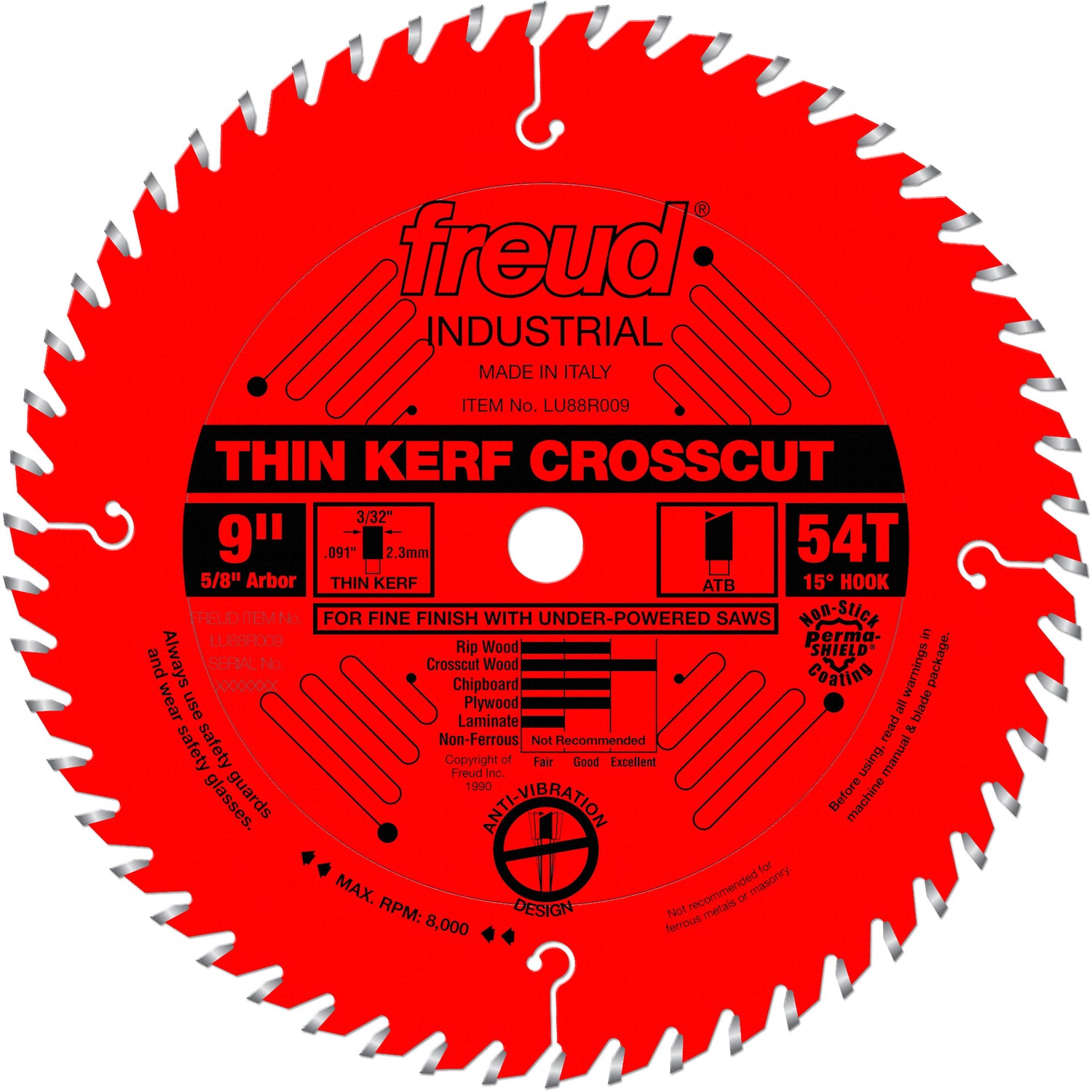 TCS Industrial Saw Blade - Rip/Crosscut Thin Kerf, 9", 54 Teeth, Wood Use