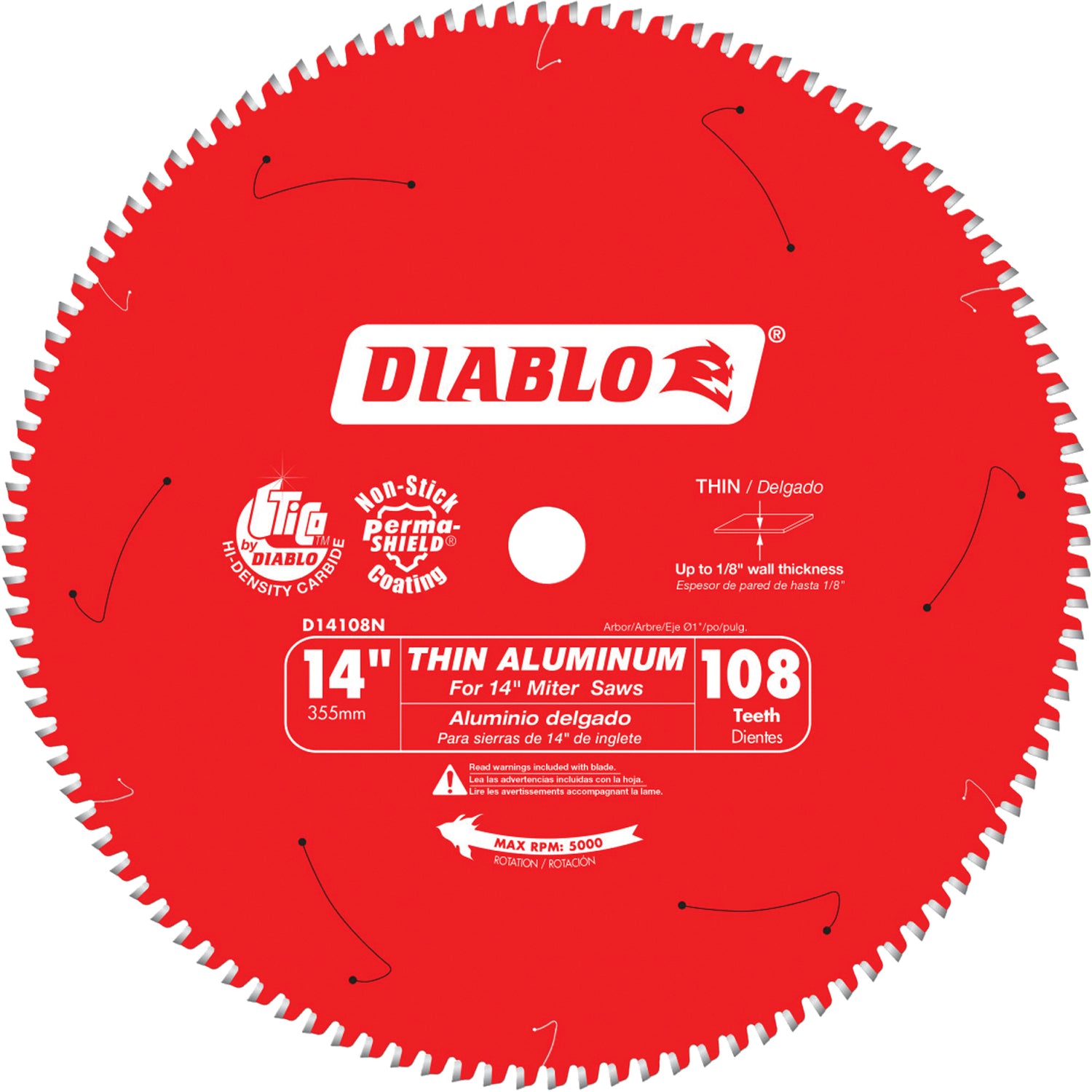 Thin Aluminum Cutting Circular Saw Blade, 14", 108 Teeth, Plastic/Fibreglass/Non-Ferrous Use