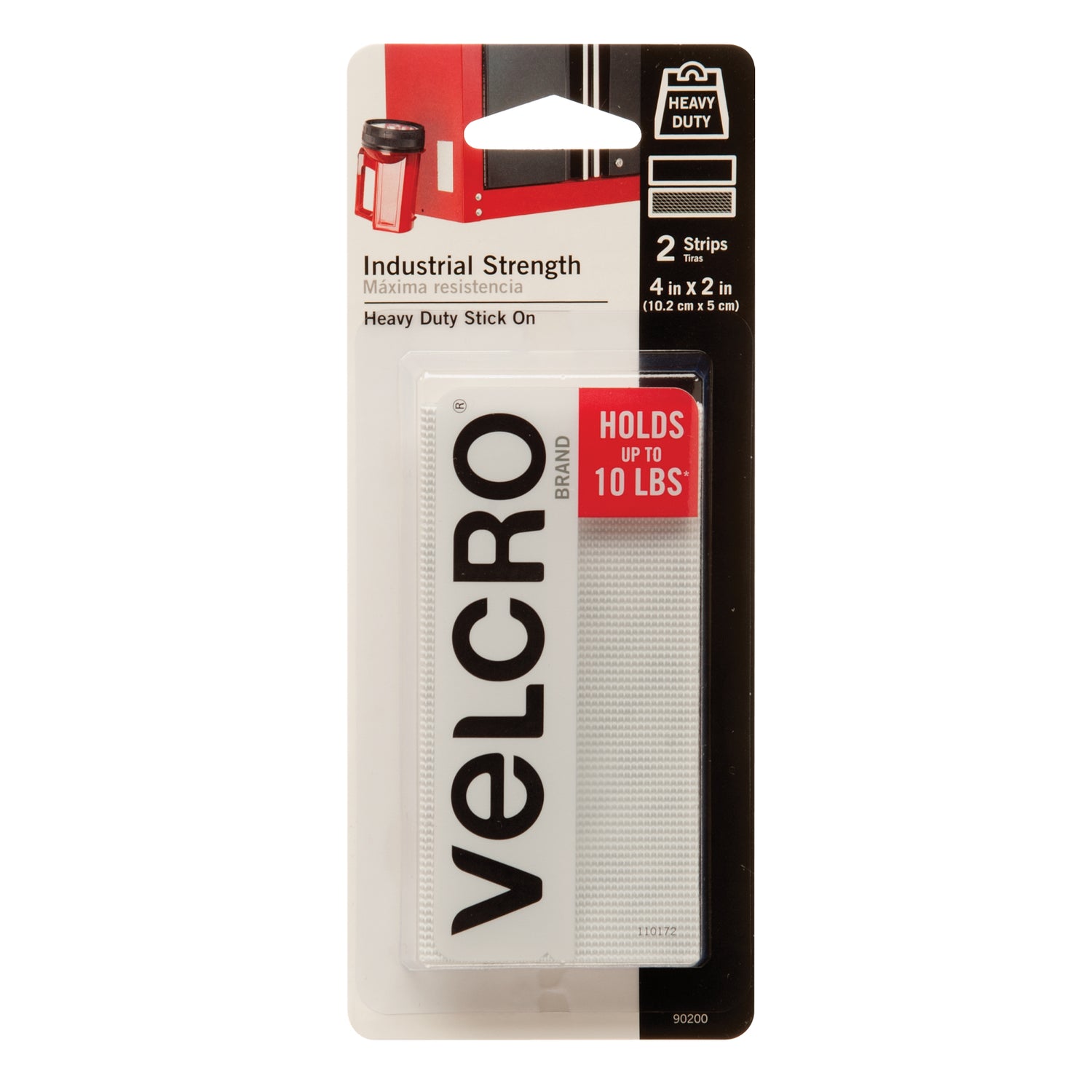 Industrial Strength Fastener Tape, Hook & Loop, 4" x 2", Adhesive, White