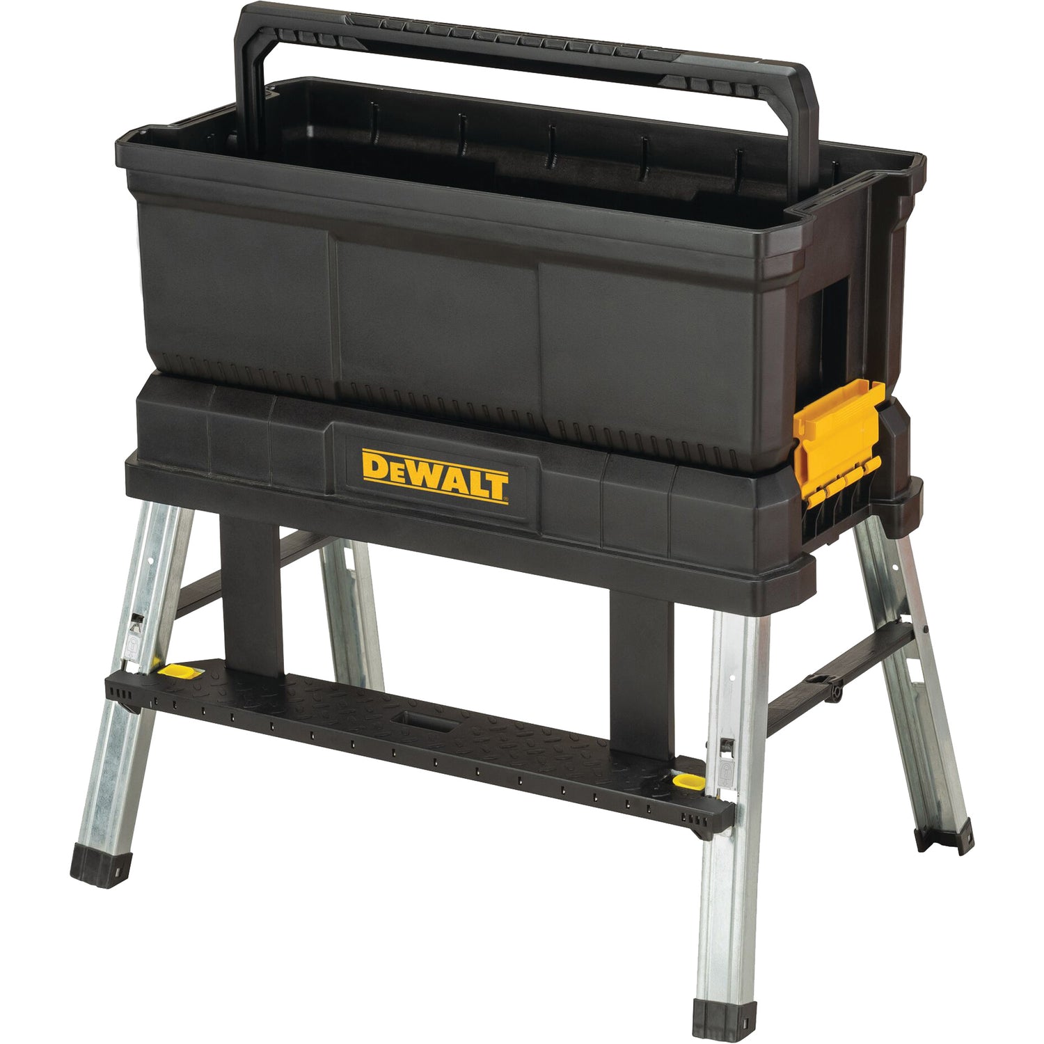 • Side latches lock stool and tote for a security