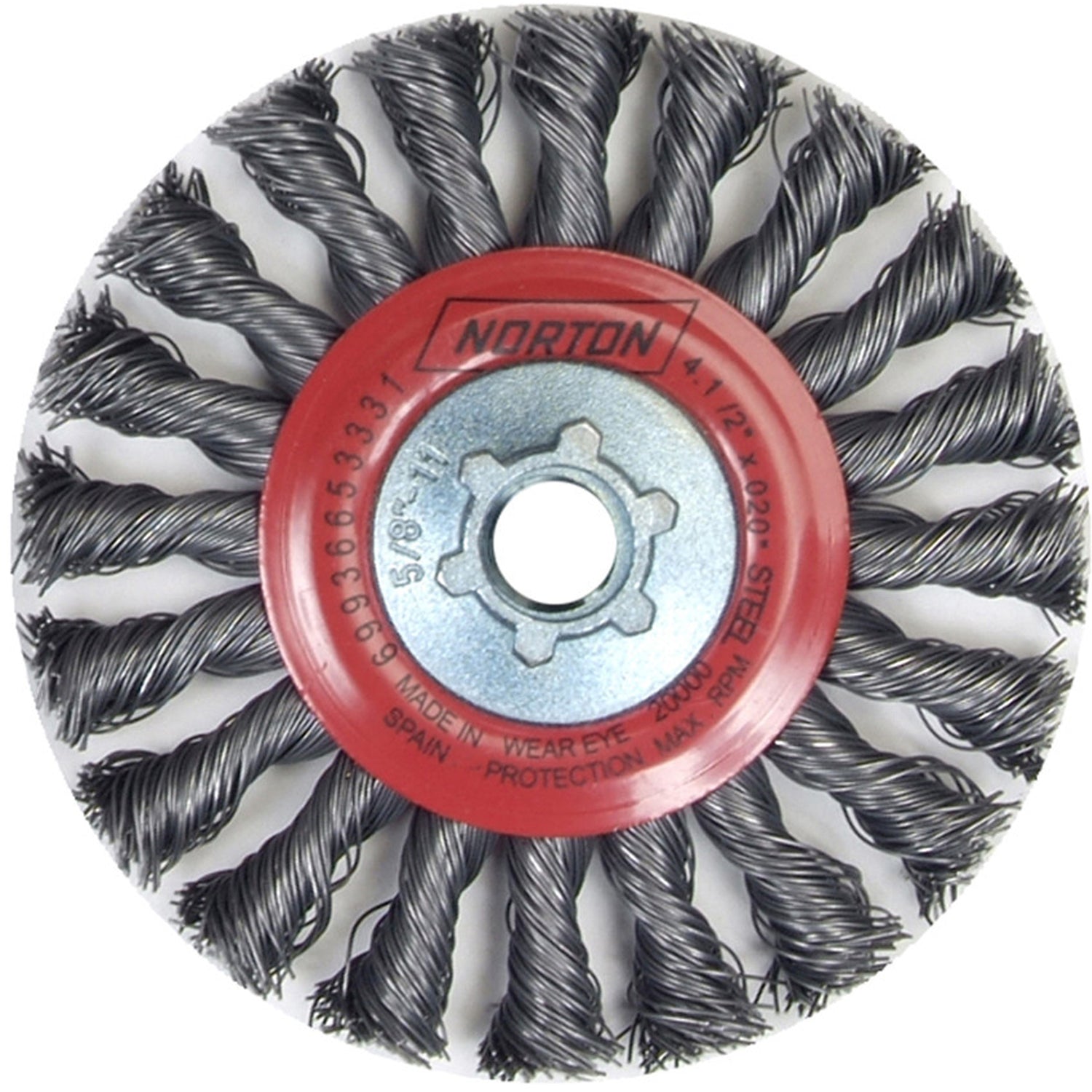 Full Cable Twist Wire Wheel, 4" Dia., 0.02" Fill, 5/8"-11 Arbor, Steel