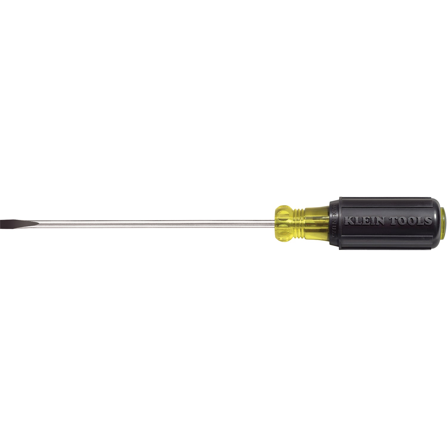 • Klein® screwdrivers are made of the highest quality materials. Designed for the serious industrial user, these screwdrivers are the standard. Featuring cushion grip for user comfort and durability. Chrome plated shank and heat treated tip insure long life. Grip is resistant to gas, oil and water.