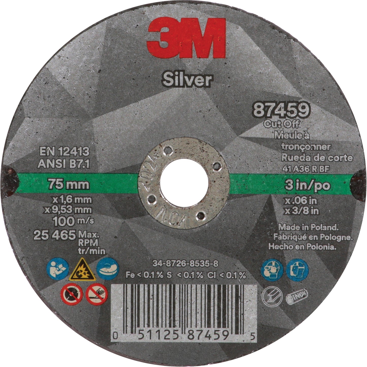 Silver Cut-Off Wheel, 3" x 0.06", 3/8"-24 Arbor, Type 1, Ceramic, 25645 RPM