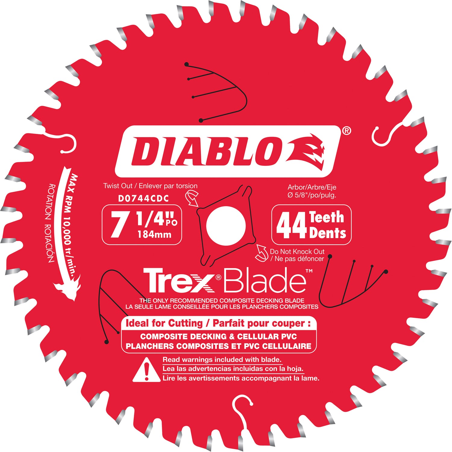 Trex® Blade™ Cutting Saw Blade, 7-1/4", 44 Teeth, Plastic/Composite Decking Use